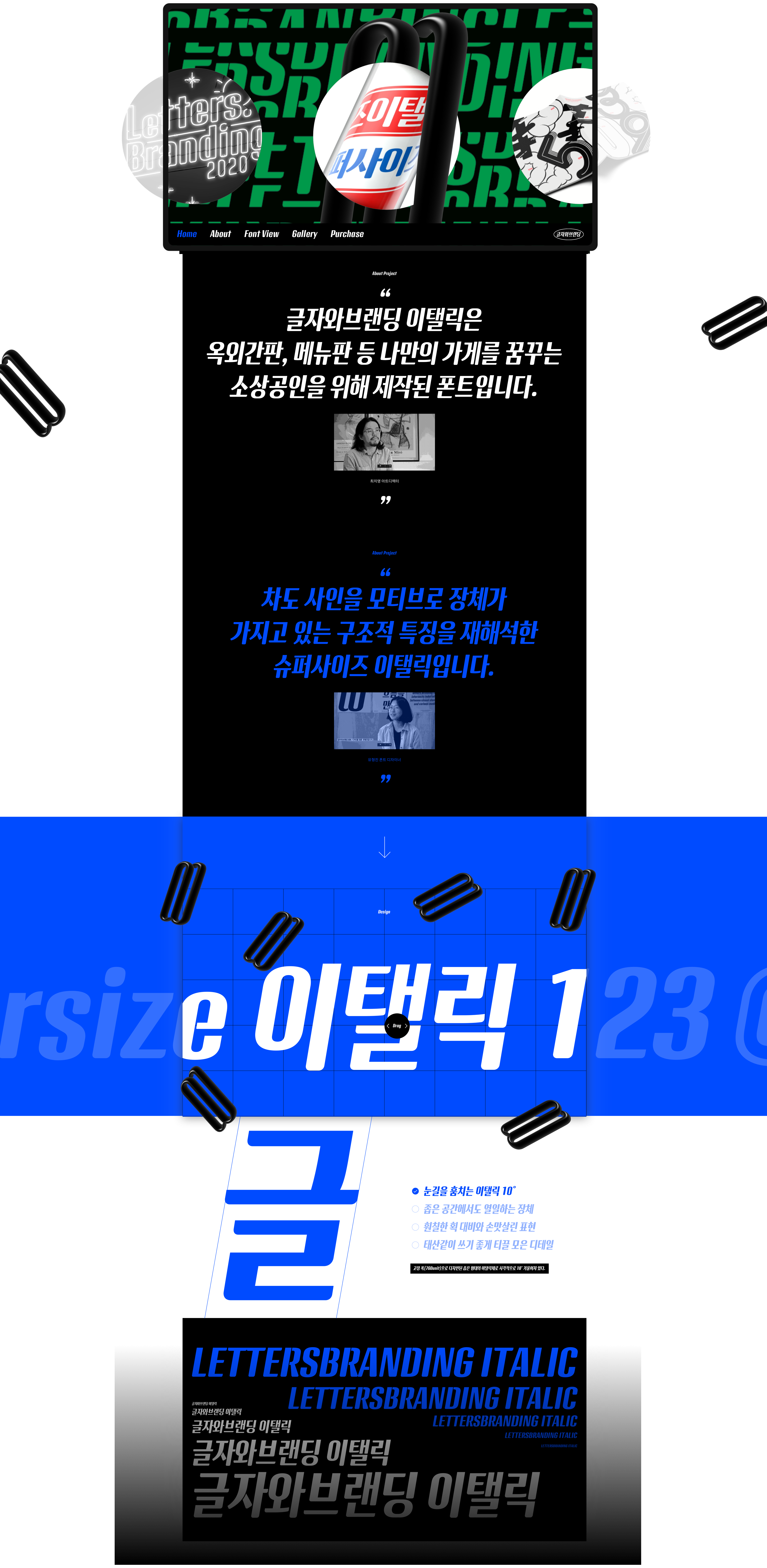 본 프로젝트는 글자와브랜딩 이탤릭 서체의 홍보 반응형 웹사이트 입니다.